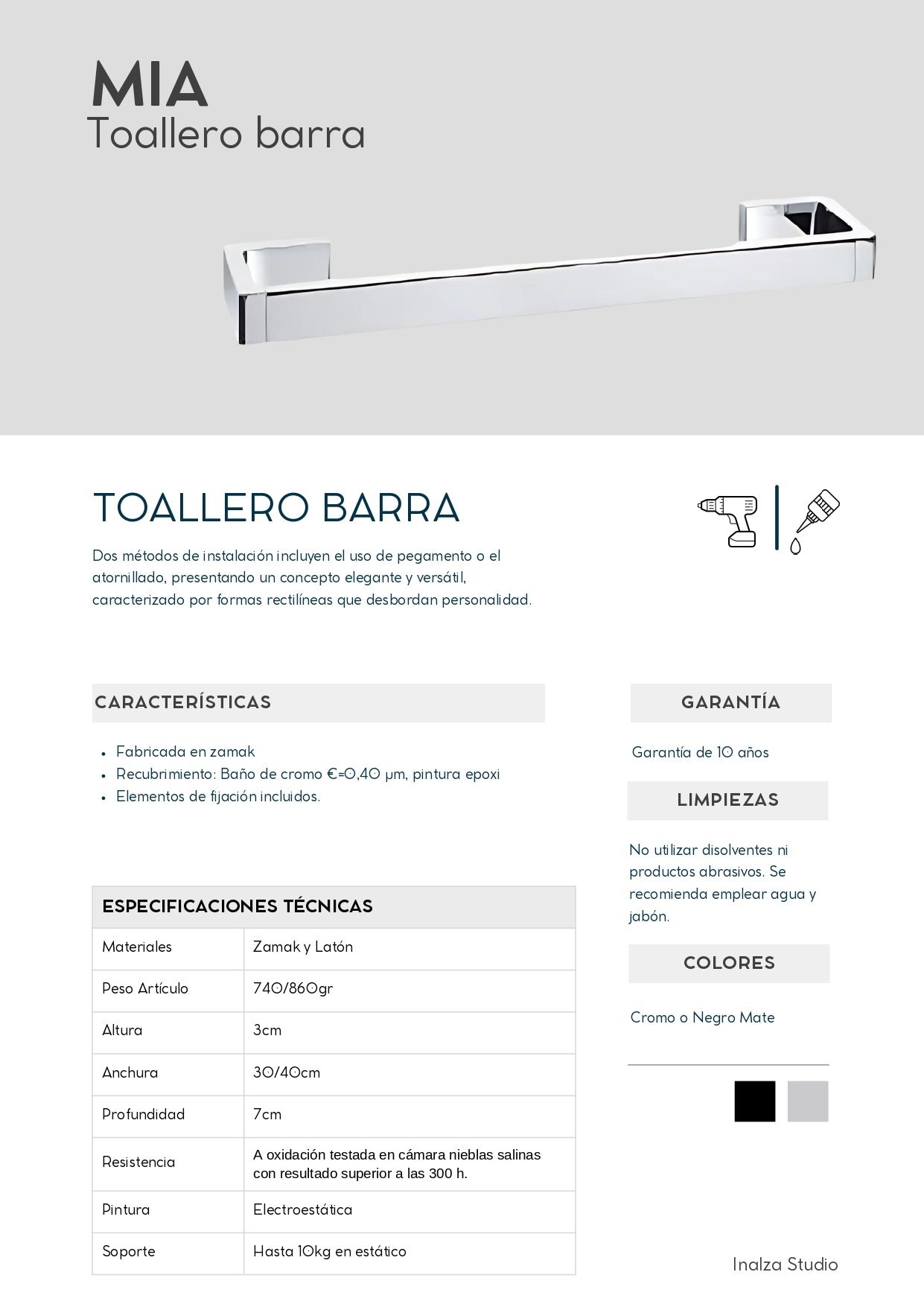 Toallero Cromado de Zamak y Latón, Negro